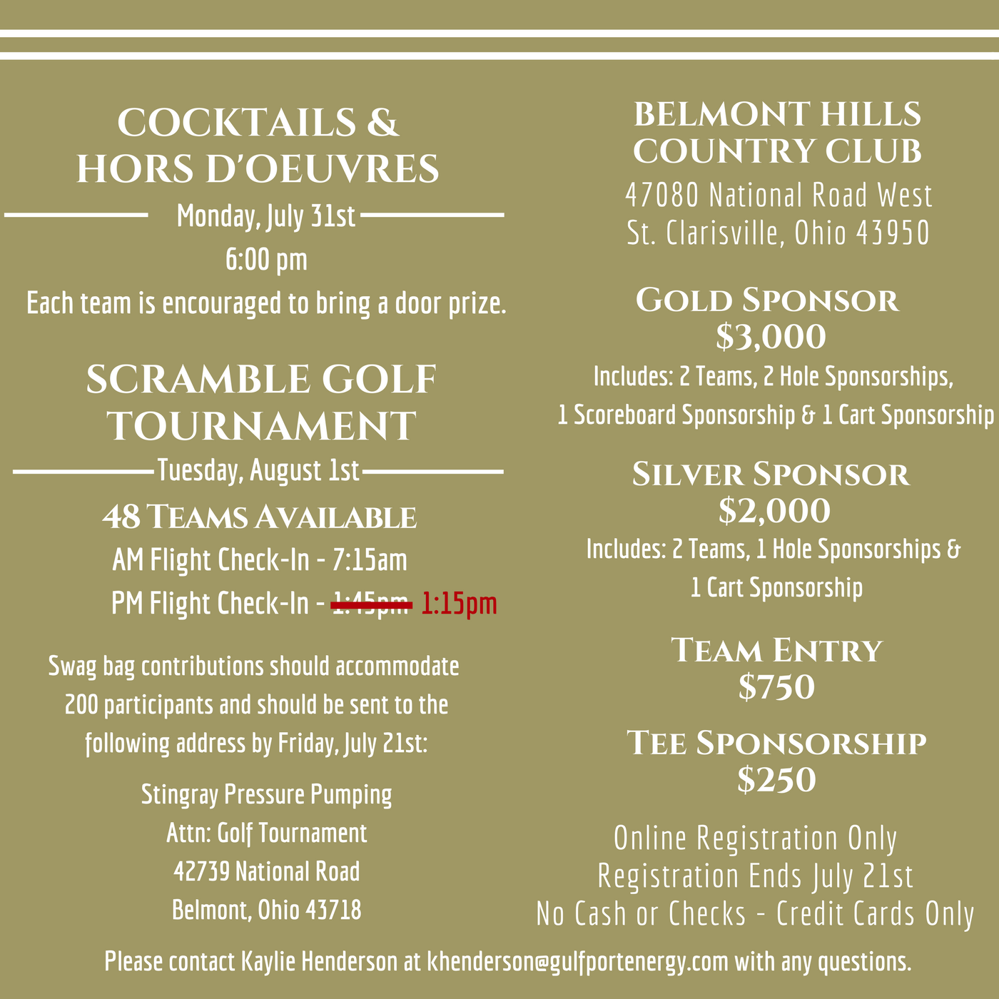 | 01:15 PM | PM Flight Check-In | Belmont Hills Country Club |
