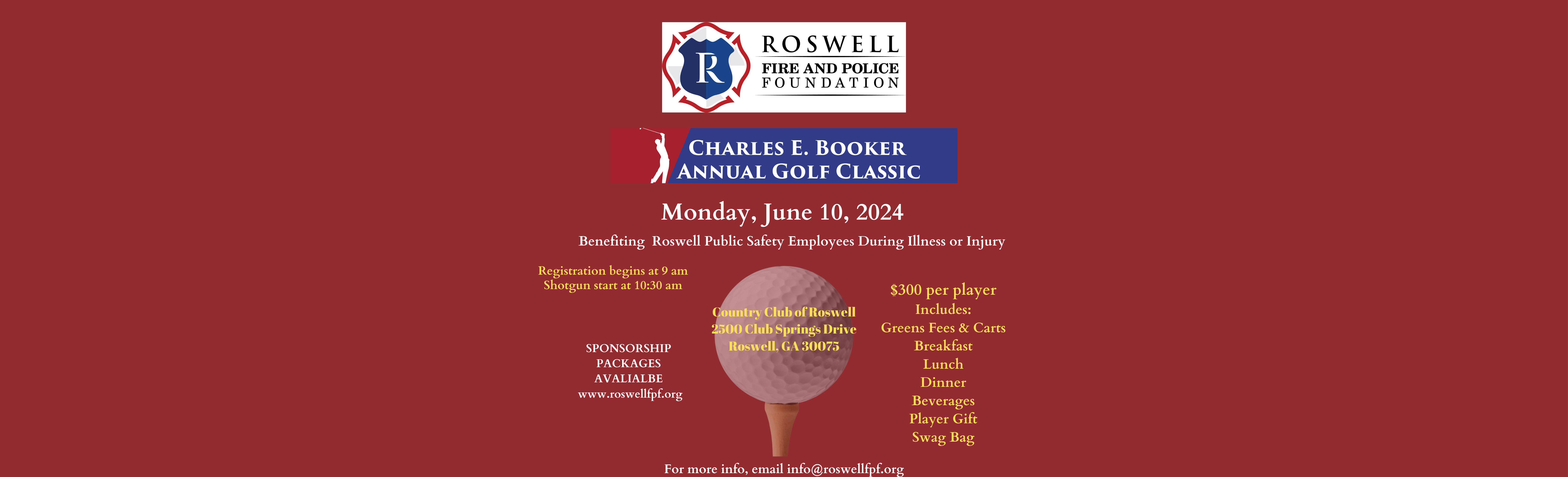 Please join us for the 2024 Charles E. Booker Annual Golf Classic for a great day of golf at Country Club of Roswell on