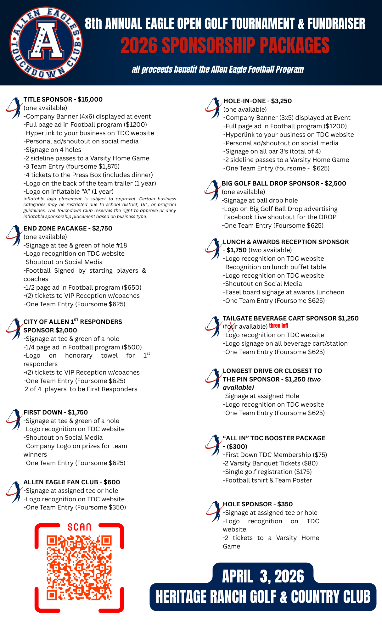 For questions or sponsorship inquiries, contact Chase.Hargis@AllenISD.org OR AllenEaglesTDCGolf@gmail.com.