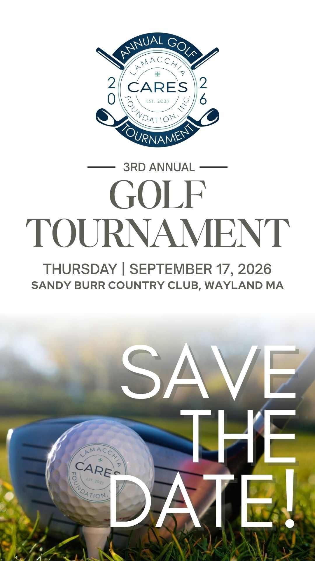 3rd Annual Lamacchia Cares Golf Tournament: Sandy Burr Country Club   |   Thursday September 17, 2026