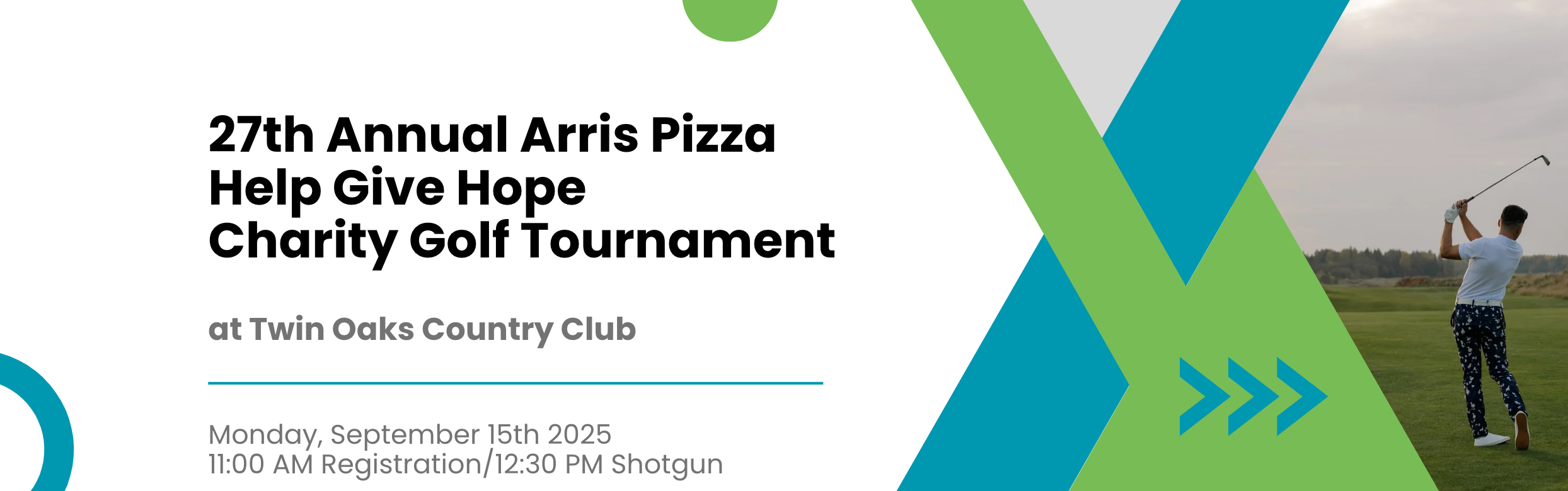 Registrations are now open for the 27th Annual ARRIS PIZZA/Help Give Hope Charity Golf Tournament, Monday, September 15th. We're opening entries early this year to avoid the rush we experience when waiting until mid-August.