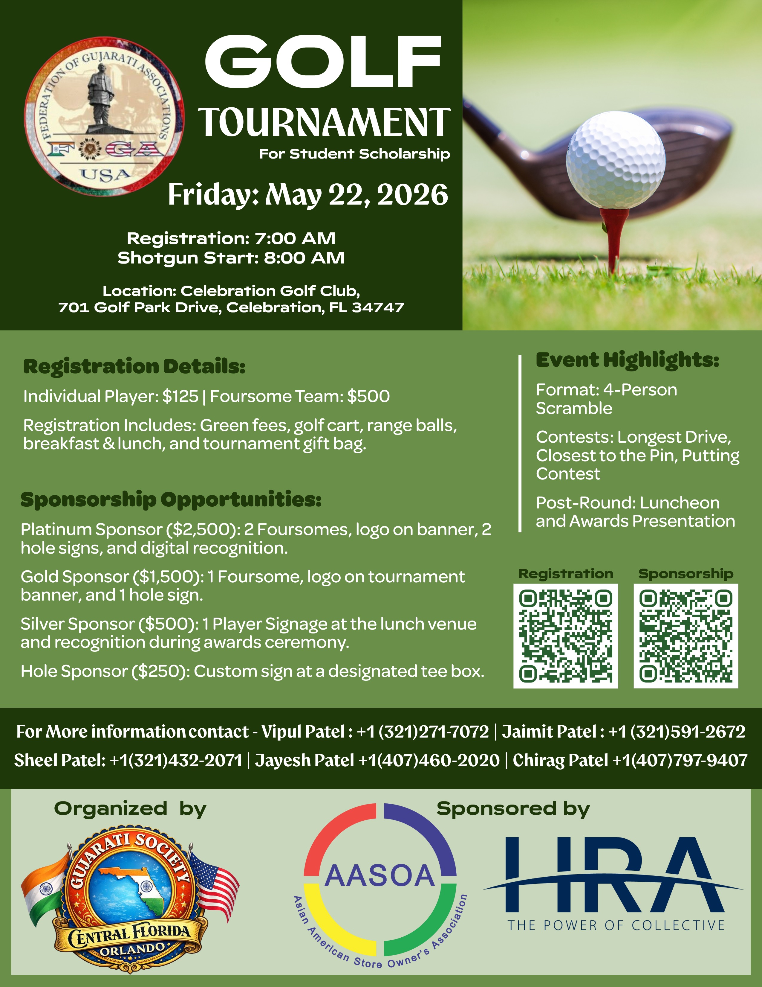 | 08:00 AM | Tournament Begins | At Assigned Golf Carts |