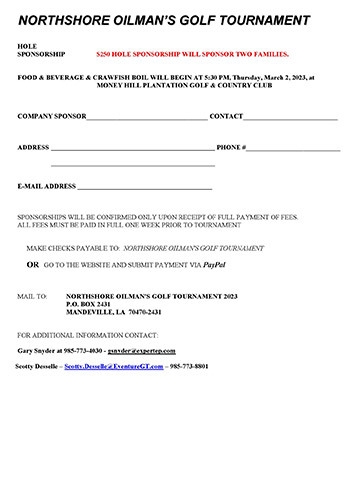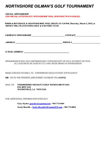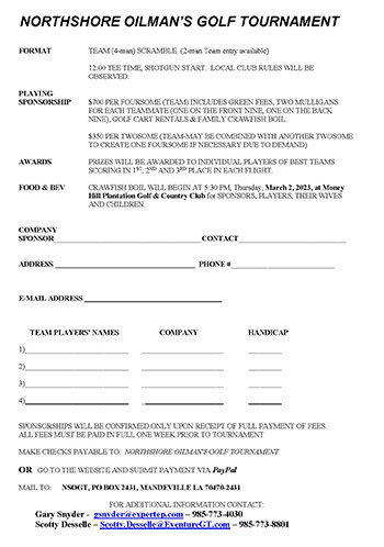 34th NORTHSHORE OILMAN’S GOLF TOURNAMENT: Tchefuncta Country Club | Thursday February 15, 2024