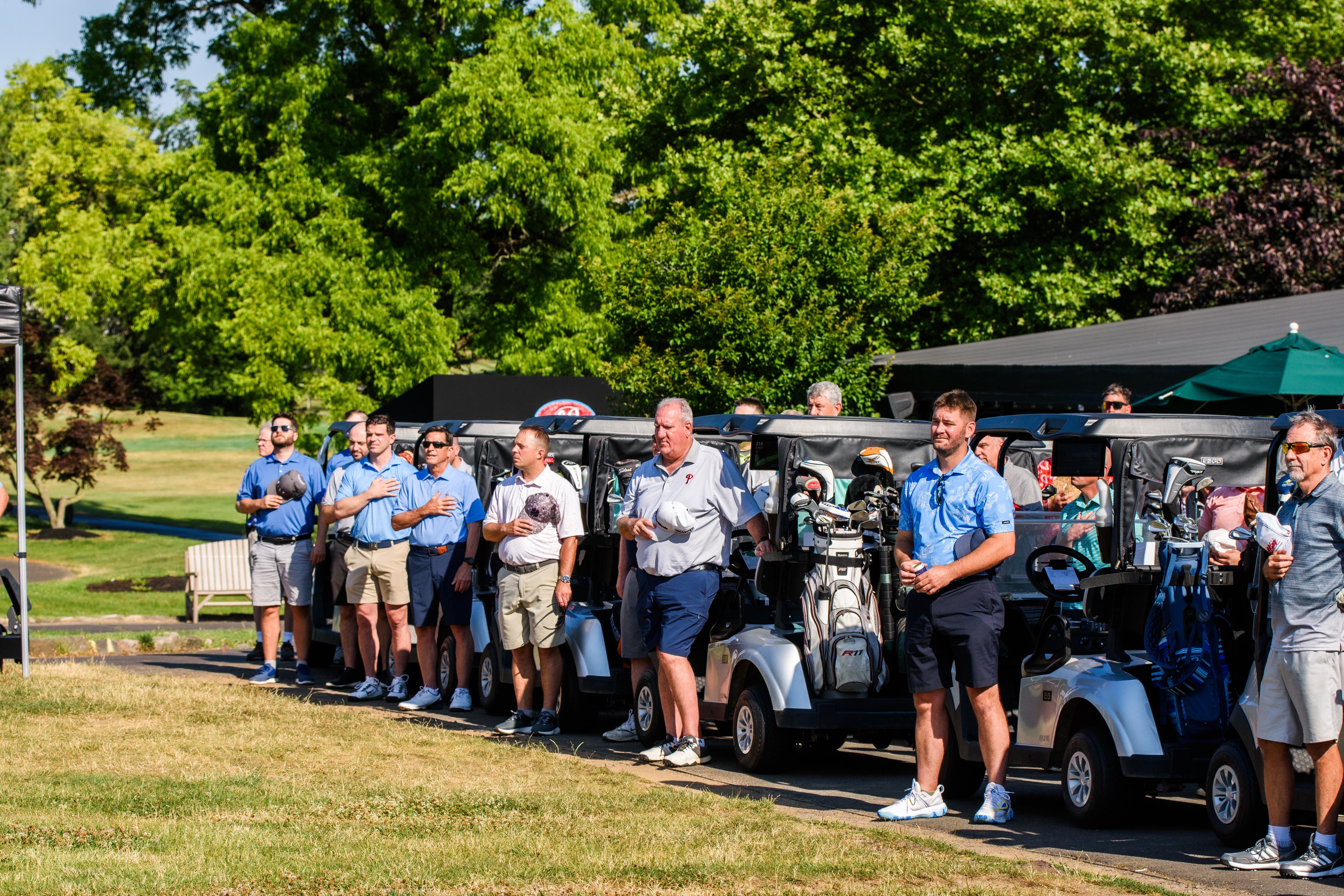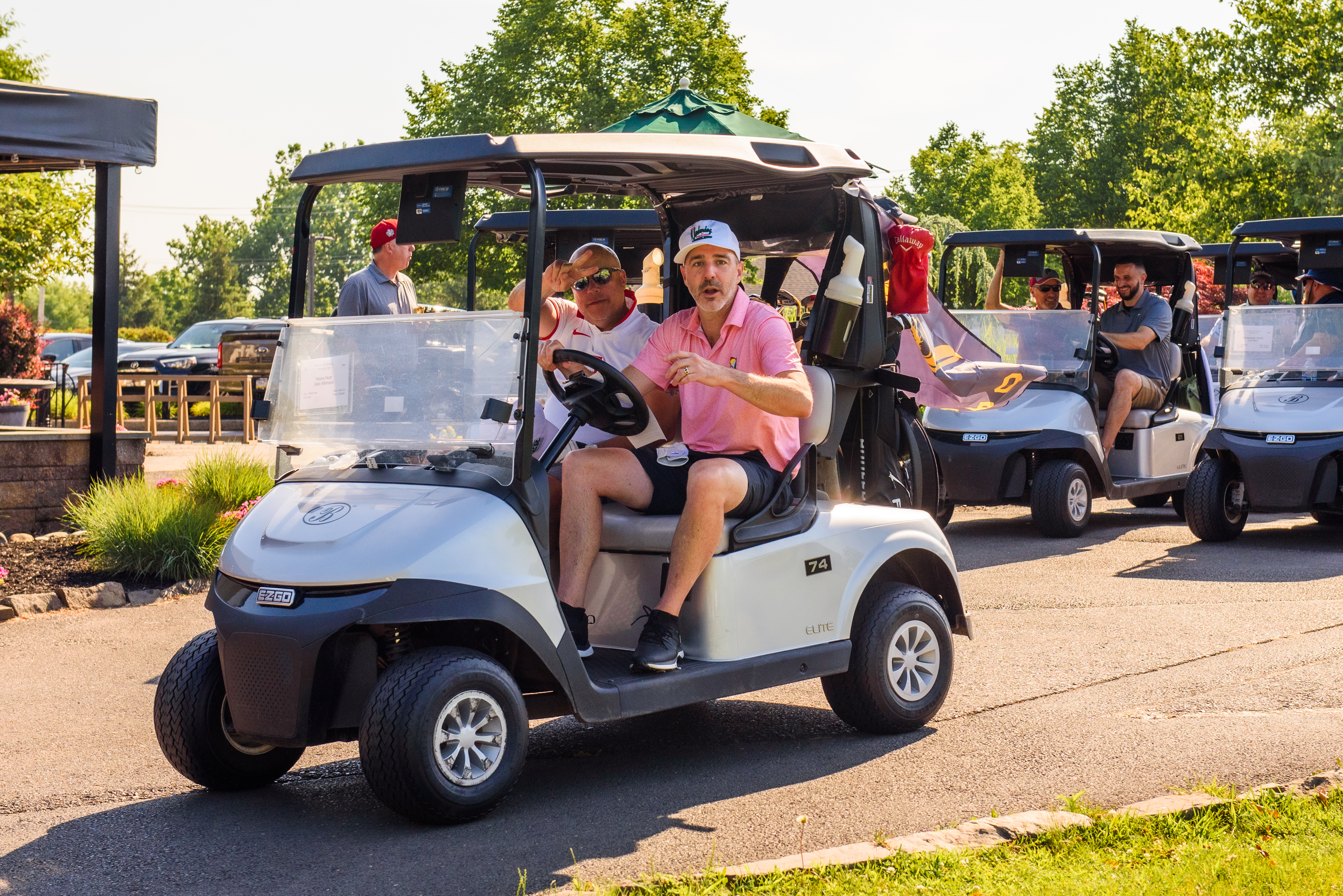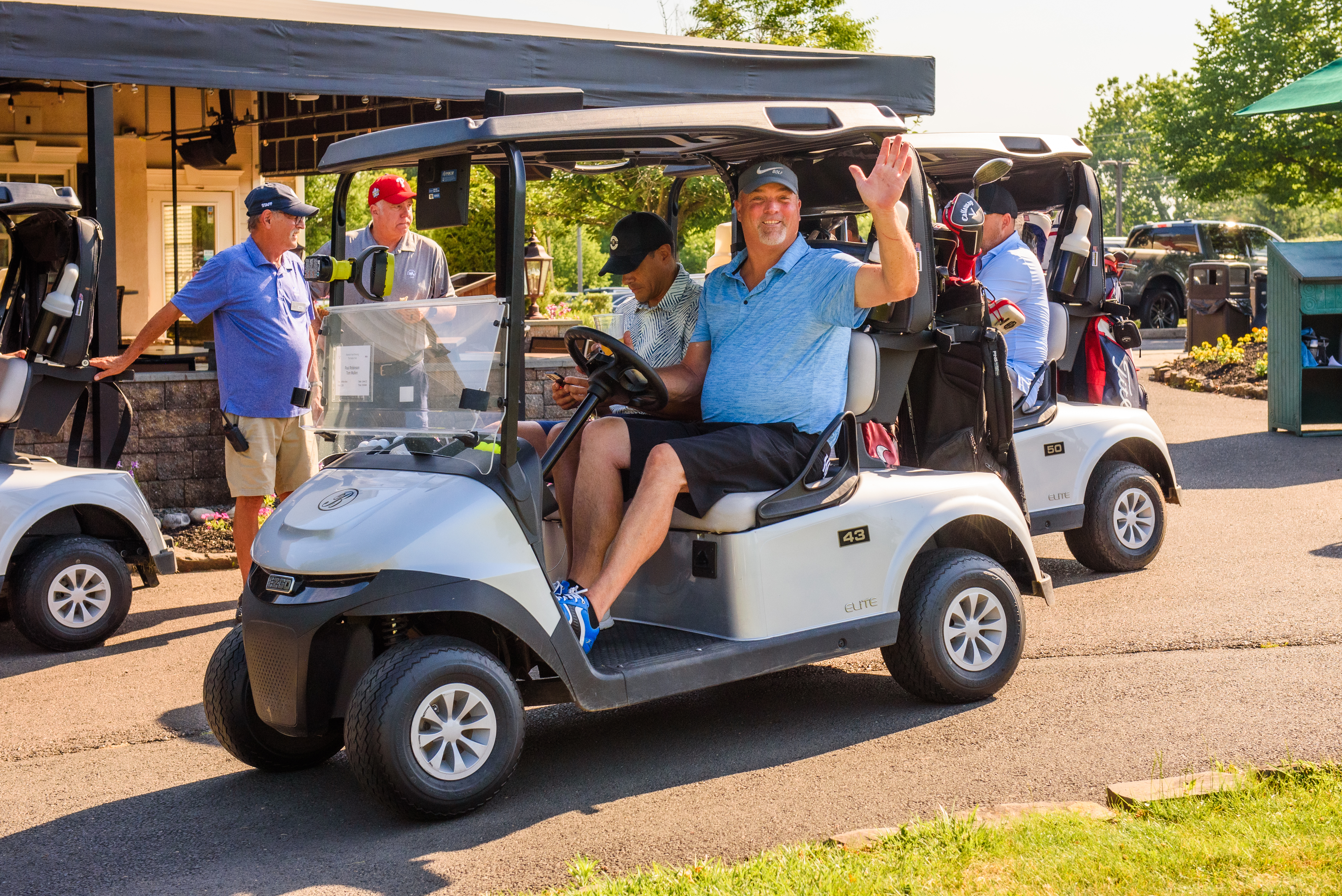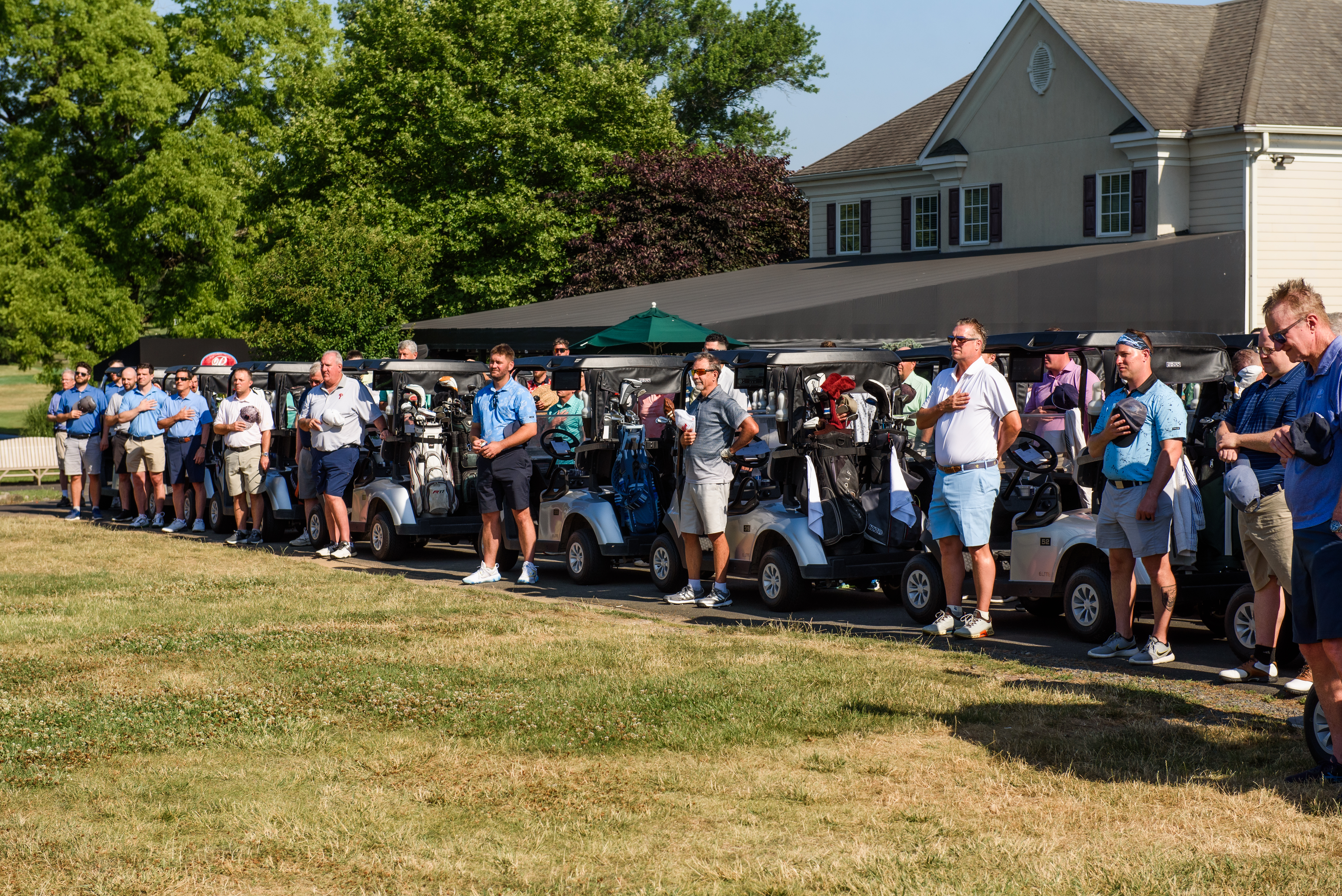| 08:30 AM | Seated in carts - Pre-tournament message | Outside of clubhouse |