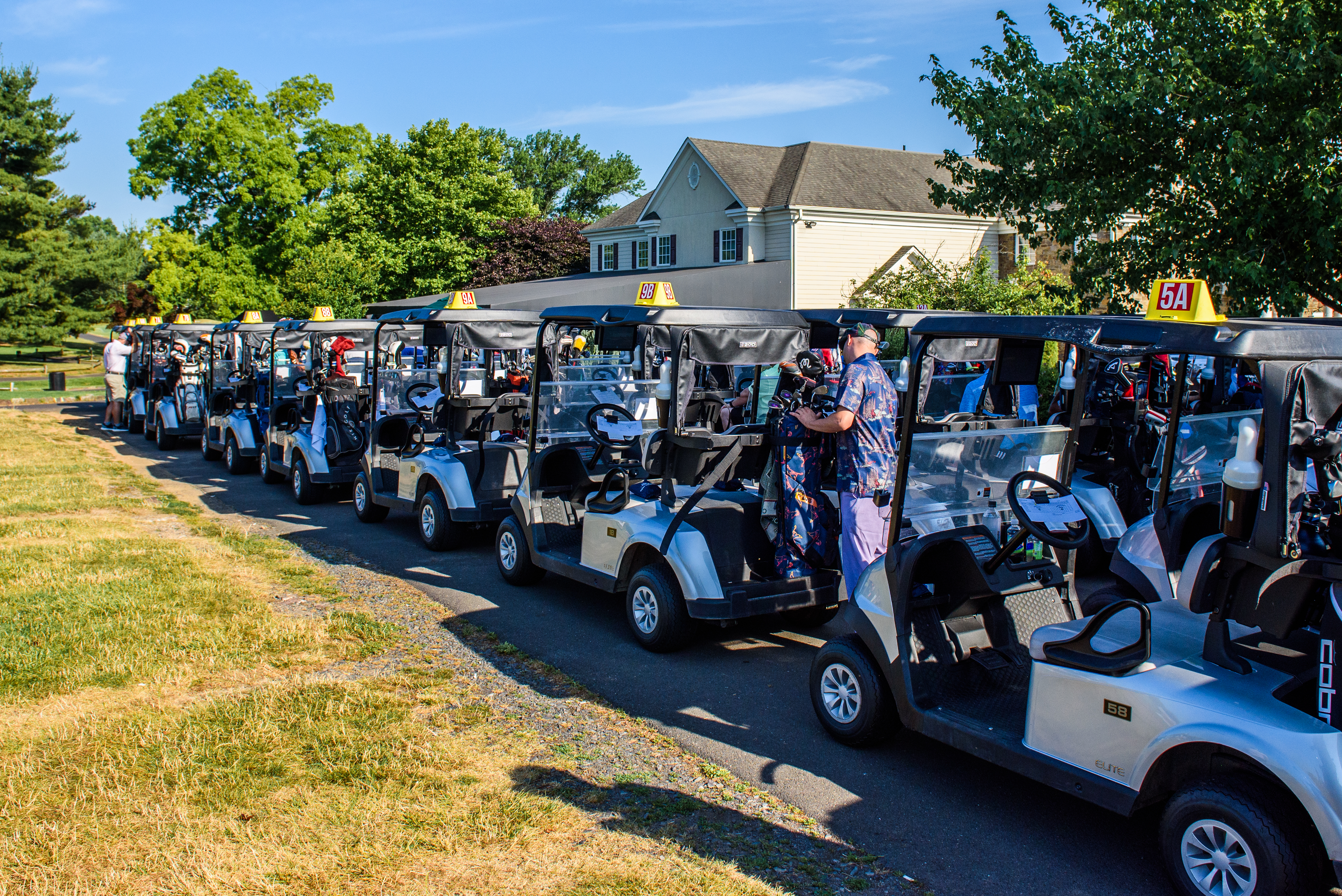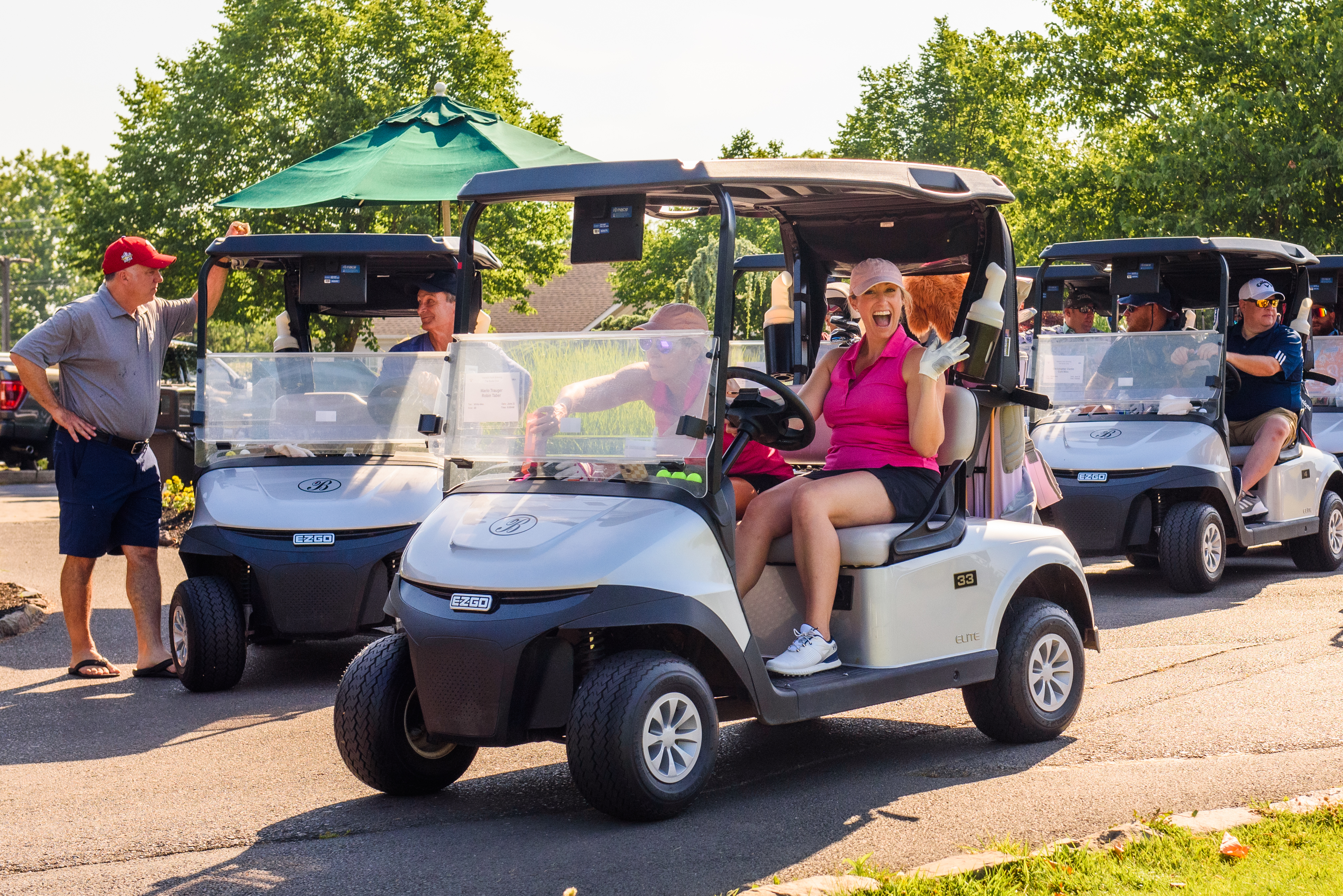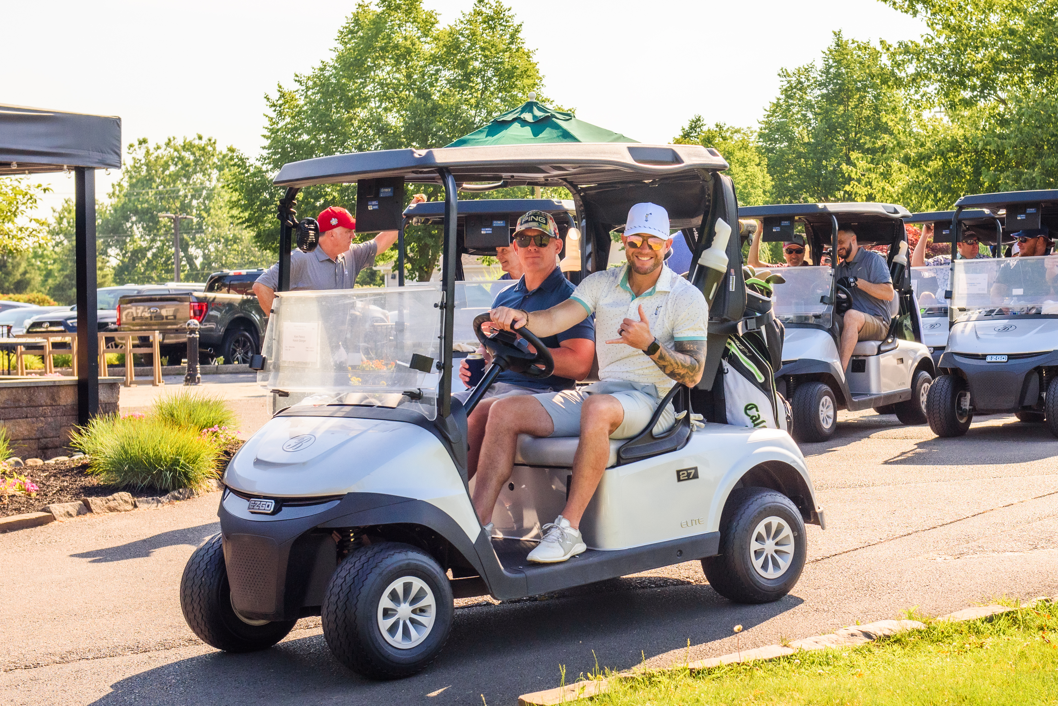 | 08:30 AM | Seated in carts - Pre-tournament message | Outside of clubhouse |