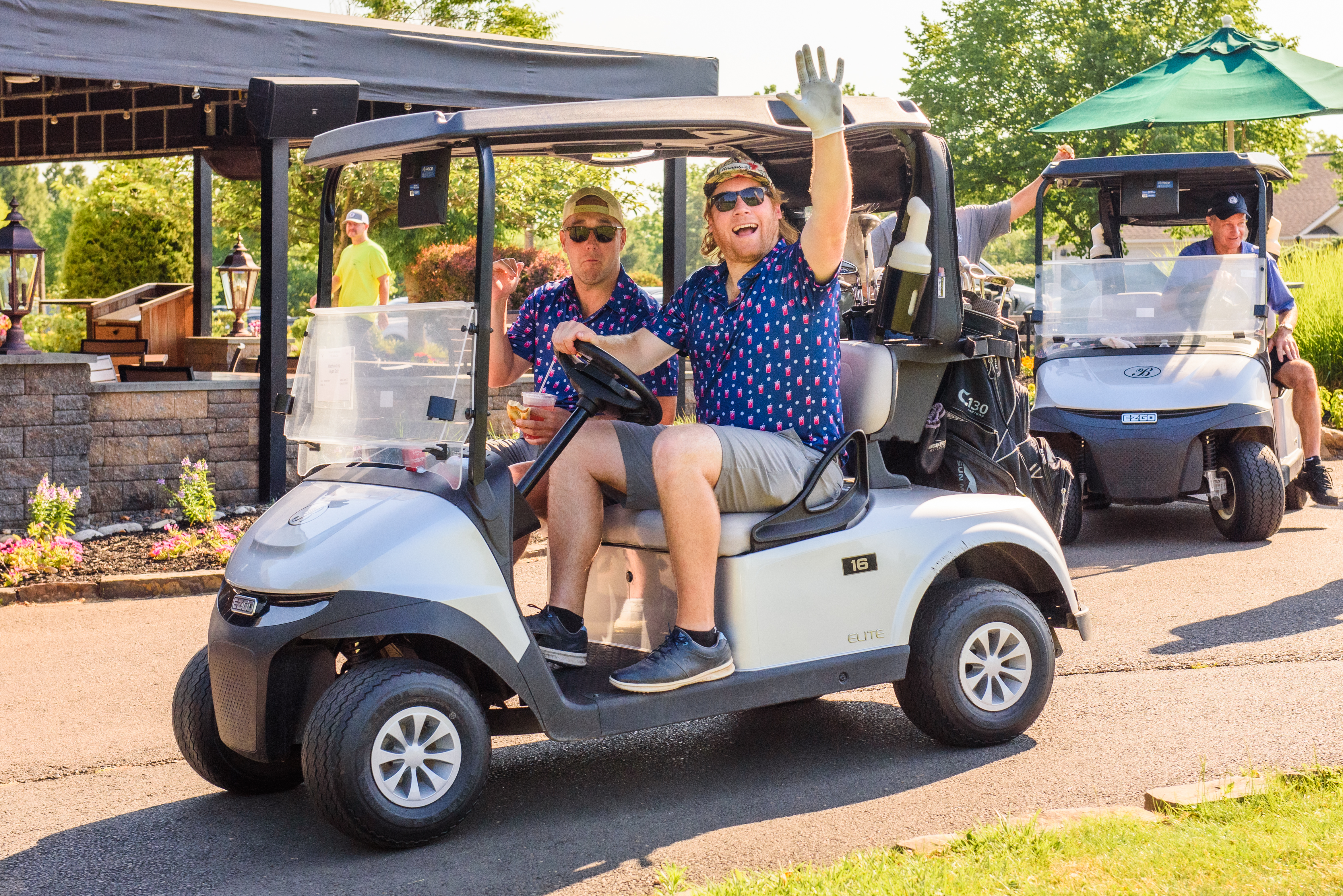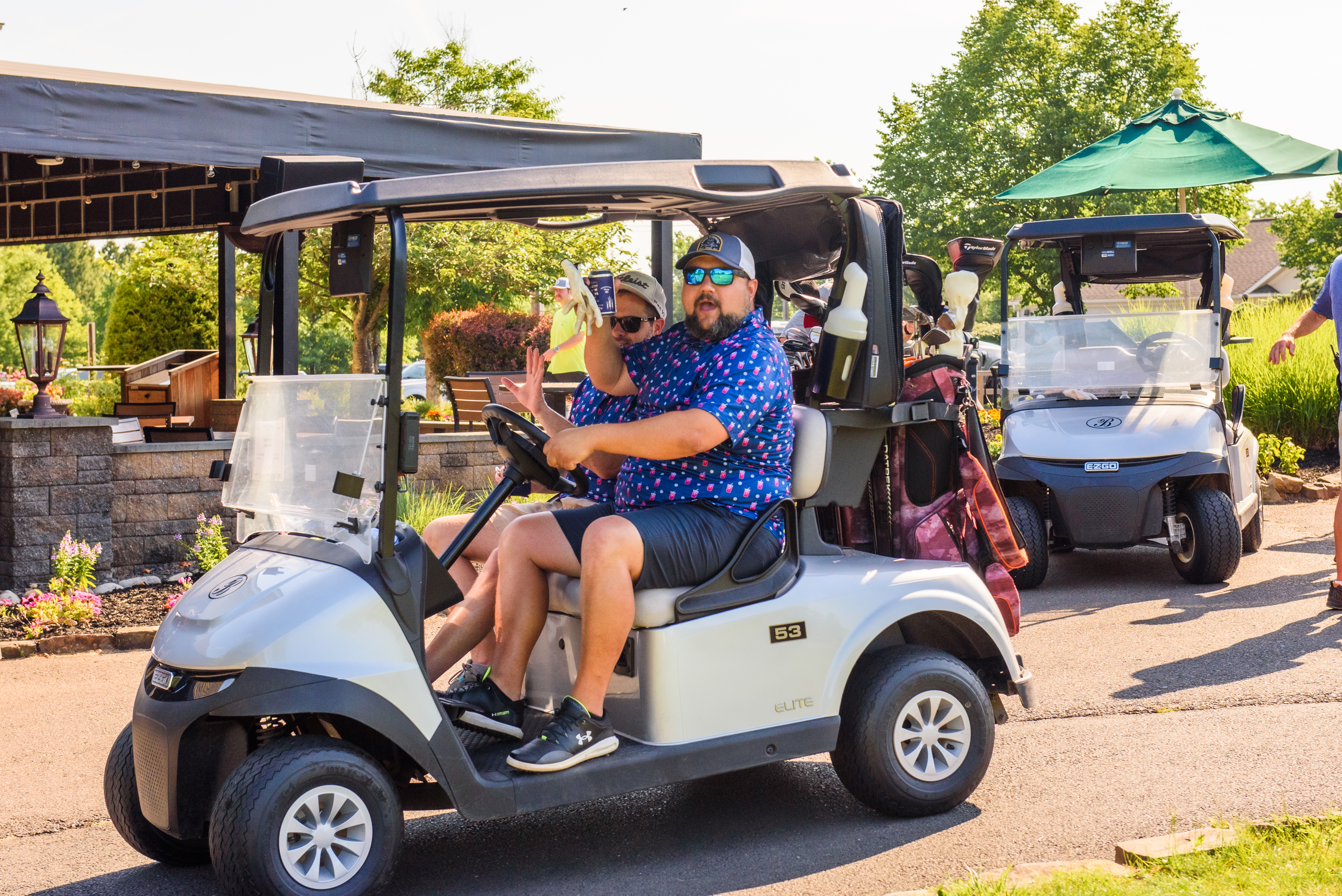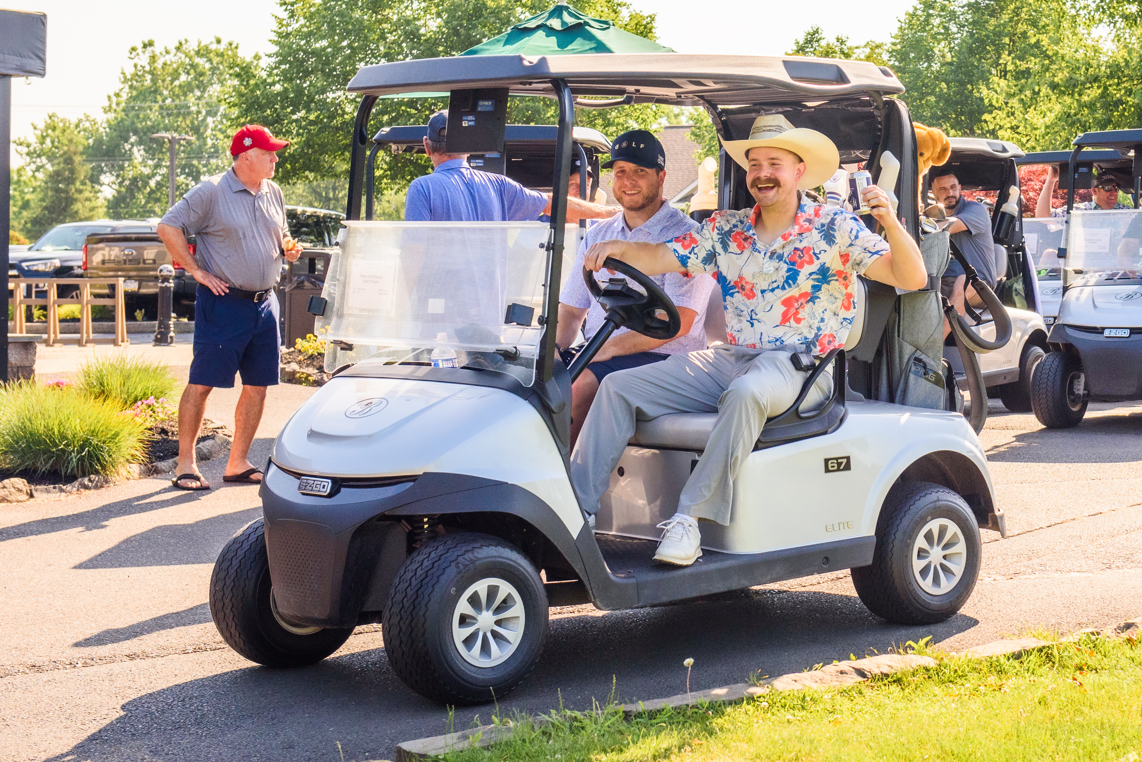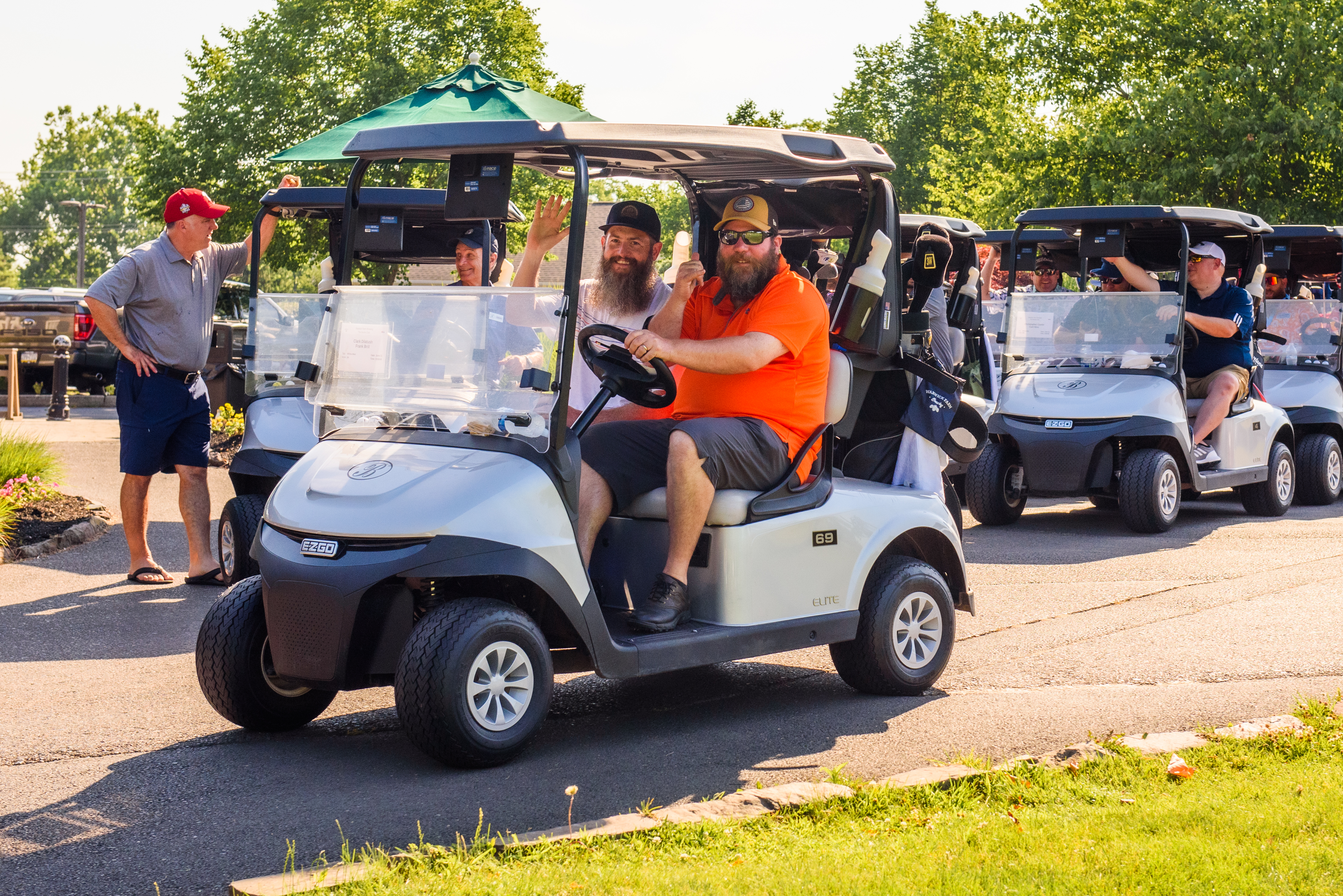 | 08:30 AM | Seated in carts - Pre-tournament message | Outside of clubhouse |